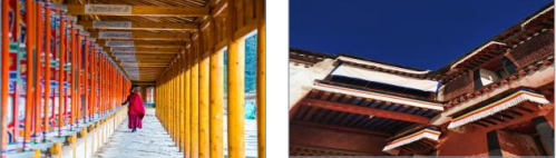 觀。雕梁畫(huà)棟,金碧輝煌,氣勢(shì)磅礴,具有藏民族獨(dú)特風(fēng)格。