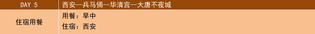 今日游覽:【兵馬俑】、《華清宮》、《大唐不夜城》、《大雁塔北廣場》